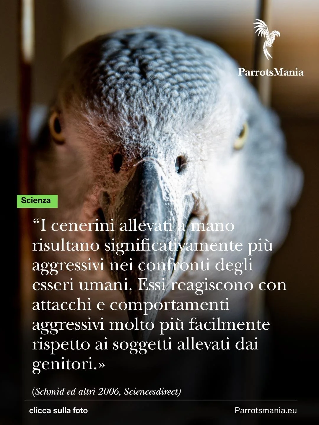 Per riassumere, dobbiamo sapere che l’insieme delle evidenze scientifiche oggi disponibili converge su un punto fondamentale: l’allevamento a mano interferisce in modo sistemico con lo sviluppo biologico del pappagallo.